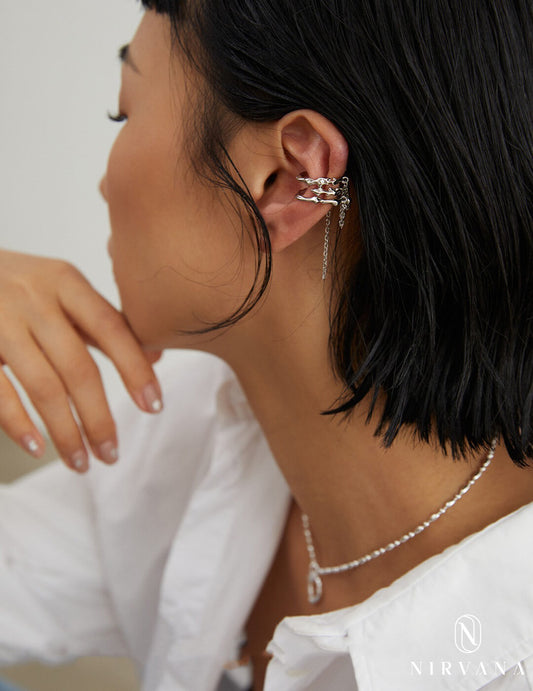 Modern Fringe Sterling Silver Ear Cuff (Single)