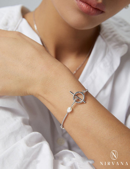Sterling Silver Pearl Oil-Drop Glaze Bracelet